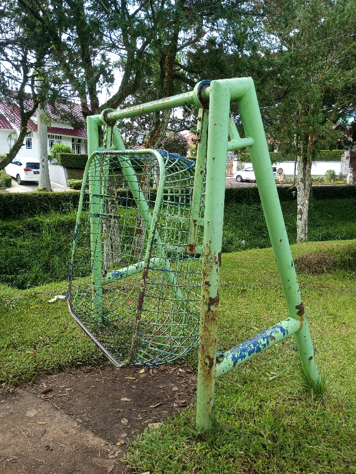 - "A green, rusted playground swing stands on a grassy area with trees in the background" by FM-YpPV53, licensed under CC BY 4.0