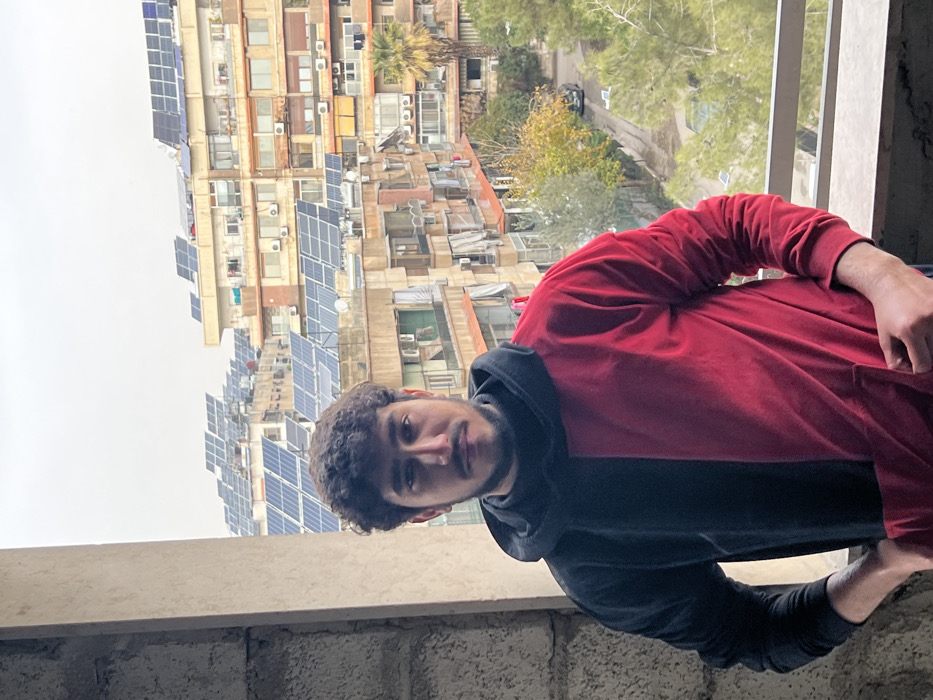 - "A male individual is depicted in a medium shot, standing on what appears to be a balcony or within a window frame overlooking an urban landscape in Al-Midan Municipality, Syria" by FM-NiDCC3, licensed under CC BY 4.0