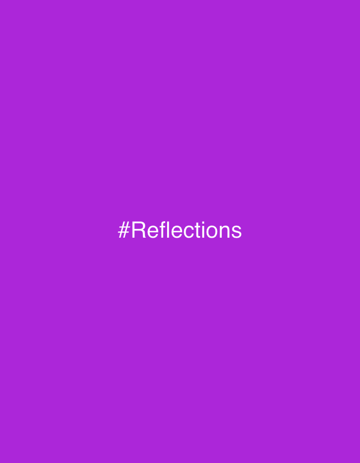 The scene, located in Ciudad de la Costa, Uruguay, is an abstract digital graphic. The entire field is filled with a solid, vibrant purple color. Centered horizontally and vertically on this purple background is white, sans-serif text reading "#Reflections". No people, subjects, objects, actions, interactions, or discernible environmental features are present within the image beyond this textual and chromatic composition.