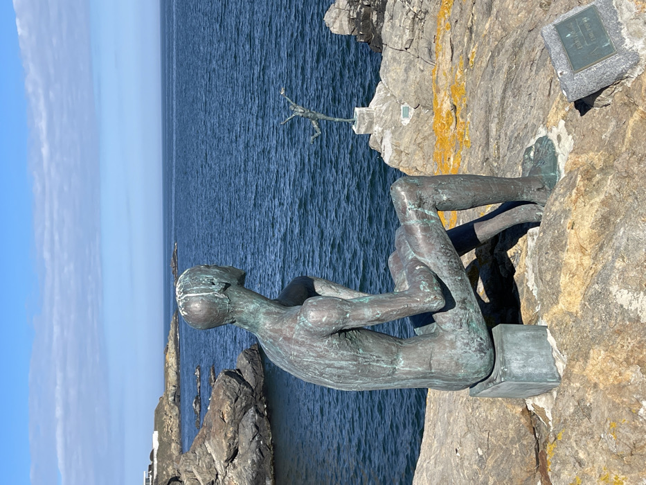 - "This image depicts a scenic coastal view in Sozopol, Bulgaria, featuring two bronze statues positioned on rocky terrain overlooking the Black Sea" by FM-fjT7H2, licensed under CC BY 4.0