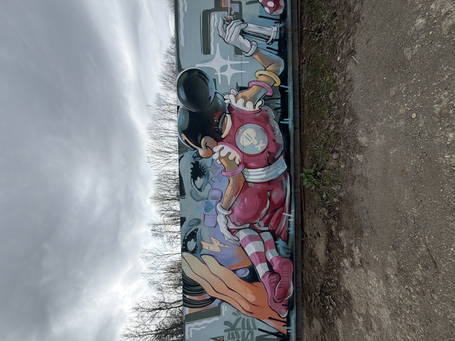 - "The image depicts an outdoor scene featuring a vibrant graffiti mural on a light blue wall, located in the city of Razgrad, Bulgaria" by FM-W30e53, licensed under CC BY 4.0