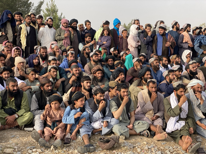 - "large group of men, likely Afghanis, gathered in an open area near Sard-E 'olya, Afghanistan, which is located at 31" by FM-B5wmg2, licensed under CC BY 4.0