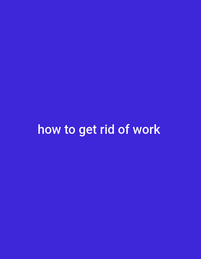 The image is a solid, dark blue background. White text centered in the frame reads "how to get rid of work". The words are in lowercase and appear in a simple, sans-serif font. The background color and text create a high contrast, making the message easy to read.