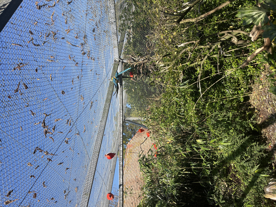 - "The image captures an expansive outdoor aviary within the Parc Zoologique et Botanique de Mulhouse, France, under a clear blue sky" by FM-rLGAz2, licensed under CC BY 4.0