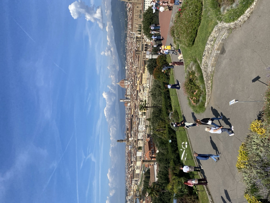 - "This image captures a panoramic view of Florence, Italy, likely from the Rose Garden (Giardino delle Rose) located below Piazzale Michelangelo, overlooking the city and the Arno River" by FM-GMXqP2, licensed under CC BY 4.0
