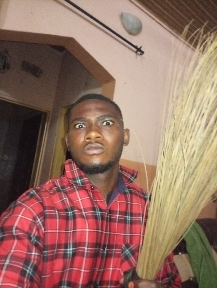 An individual is depicted indoors in Muchiya, Nigeria