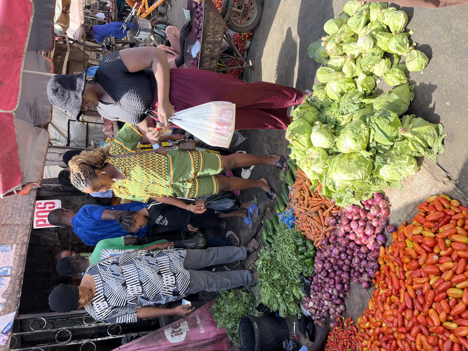 - "An outdoor market scene in Narayi, Nigeria, features multiple individuals amidst extensive piles of fresh produce displayed directly on the ground" by FM-AkVp03, licensed under CC BY 4.0