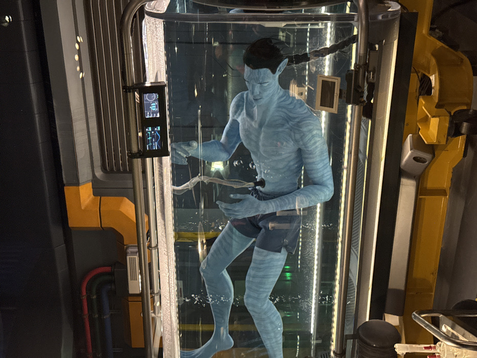 - "A life-sized, pale blue humanoid figure, consistent with a Na'vi, is suspended horizontally in a transparent, liquid-filled cylindrical tank" by FM-62dDj2, licensed under CC BY 4.0