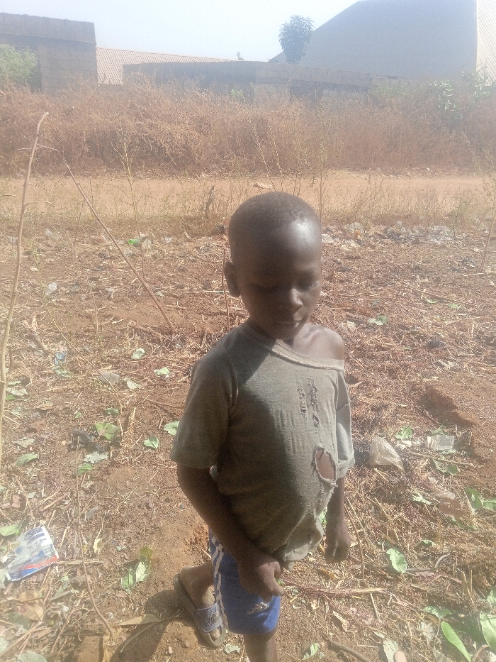 A young male child stands in an arid outdoor environment within Akwanga, Nigeria