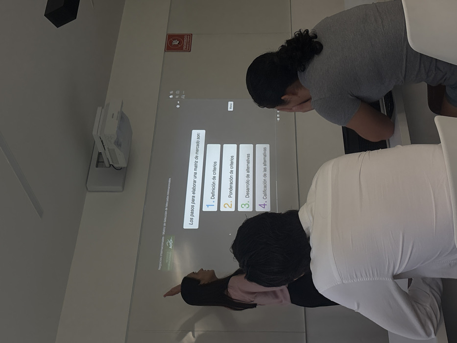 The image captures an indoor scene in a modern classroom or presentation room in Chablekal, Mexico