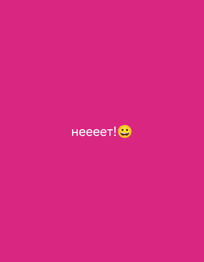 A digital image with a solid magenta background contains the Russian word "нееееет!" followed by a smiley face emoji