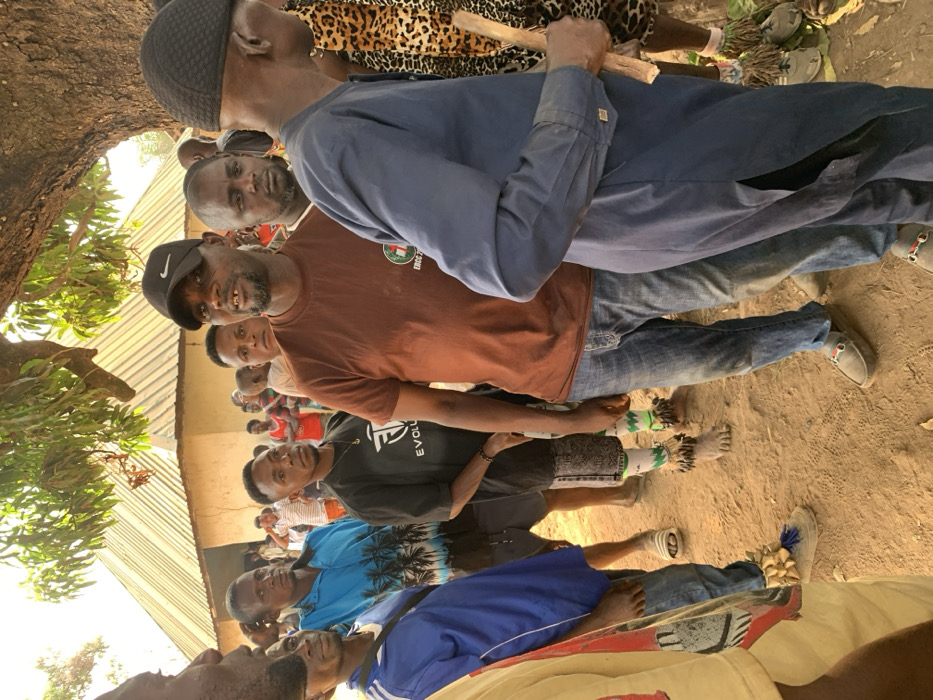 This image captures a daytime gathering of approximately 15-20 adult males in Aka, Nigeria