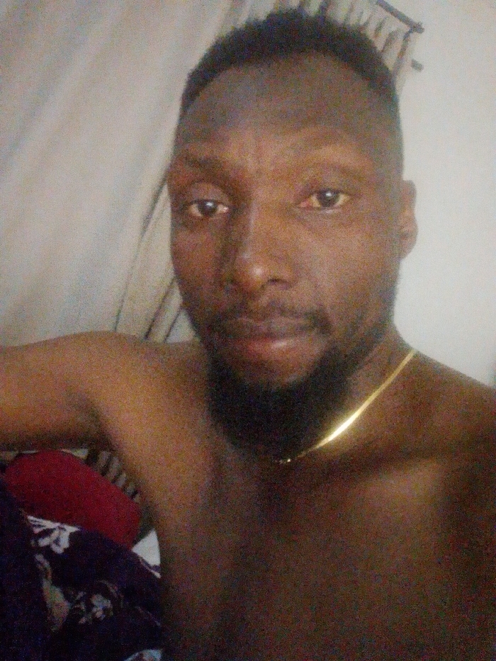 A close-up selfie features a shirtless Black man