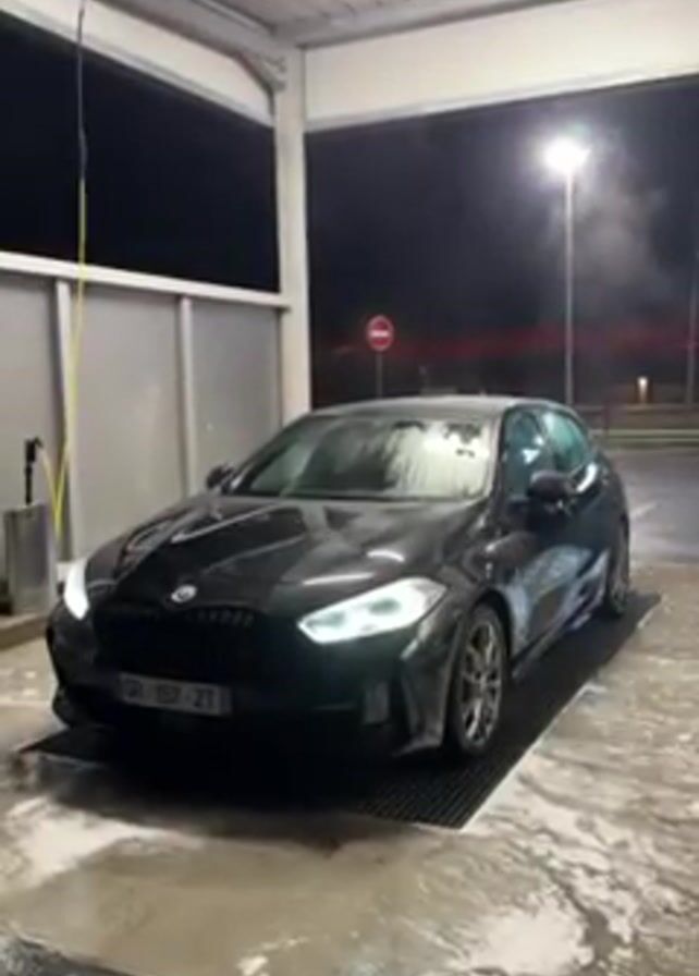 - "The scene shows a dark-colored BMW hatchback with its headlights on, parked on a grated platform within a car wash bay" by FM-vKWxk2, licensed under CC BY 4.0