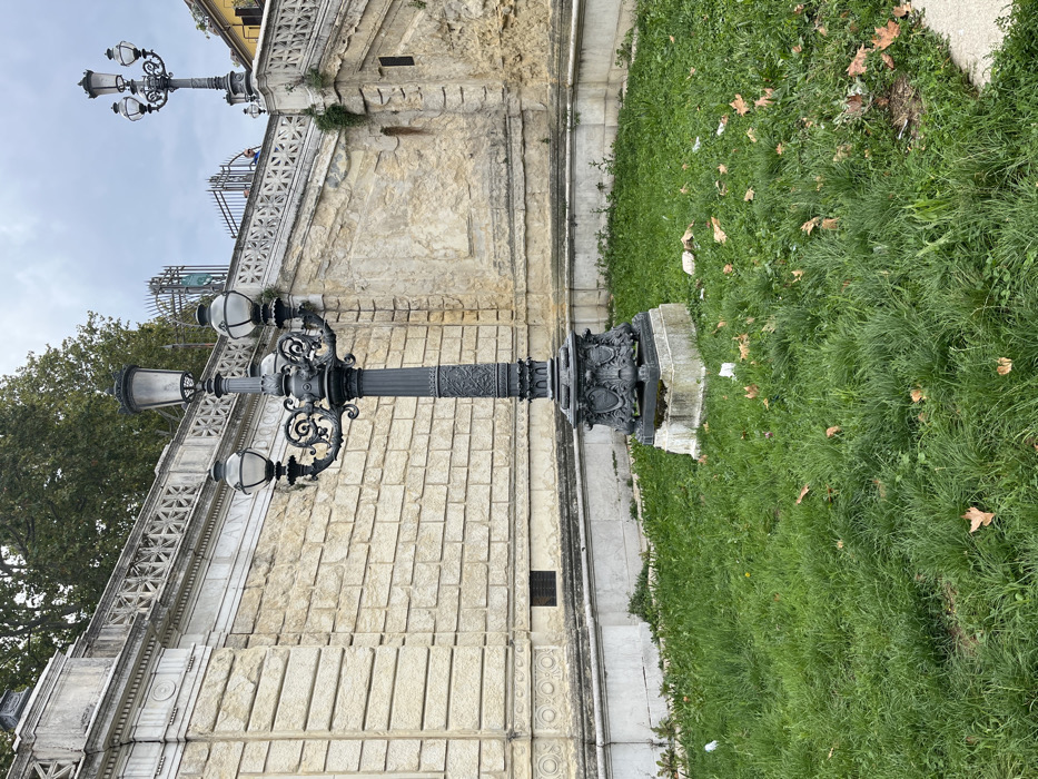 - "An ornate, dark grey, five-headed cast-iron streetlamp is centrally positioned on a patch of unkempt green grass in the Giardini della Montagnola, Bologna, Italy" by FM-9TxCK2, licensed under CC BY 4.0