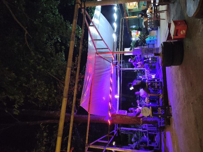 - "An evening scene depicts a live musical performance at an outdoor or semi-outdoor venue in Nieste, Germany" by FM-sO6Wu2, licensed under CC BY 4.0