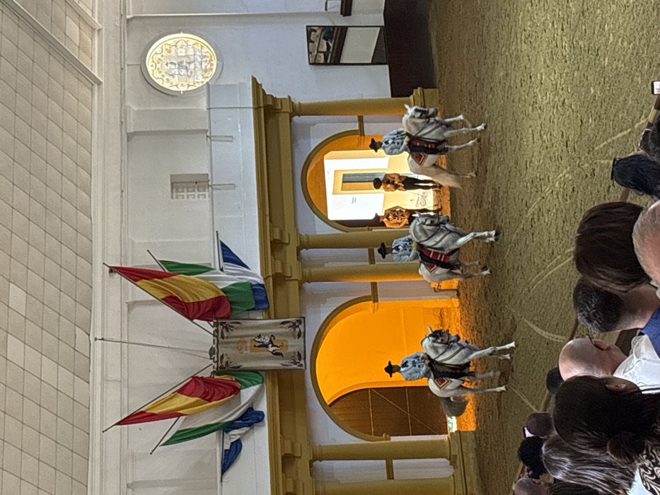 - "The image captures an equestrian performance within an indoor arena, identified by flags as the Royal Andalusian School of Equestrian Art in Jerez de la Frontera, Spain" by FM-E1hwL2, licensed under CC BY 4.0