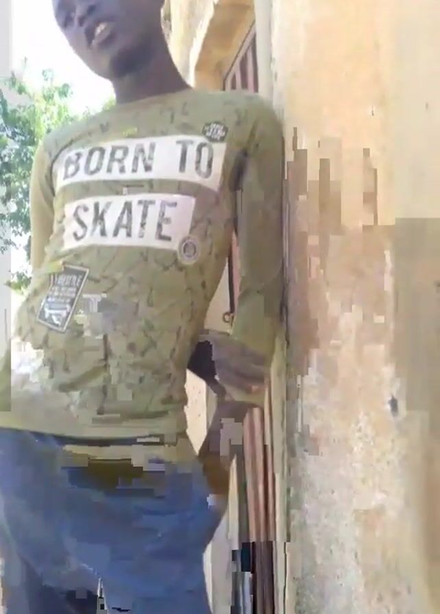 person standing next to a wall. The person is wearing a long-sleeved green shirt with the words "BORN TO SKATE" and a design on it, along with gray pants and dark sandals. They lean against a beige-colored wall. The camera shifts to show more of the surroundings, including a light blue sky. The video then cuts to a close-up of another person's face against the backdrop of the blue sky. The person in the close-up is wearing a dark shirt. Powerlines are visible in the background.