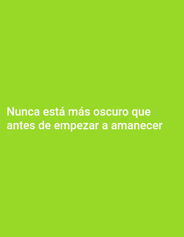 - "The image is a solid, bright green background with the phrase "Nunca está más oscuro que antes de empezar a amanecer" in white text centered on the screen" by FM-HfzRD2, licensed under CC BY 4.0