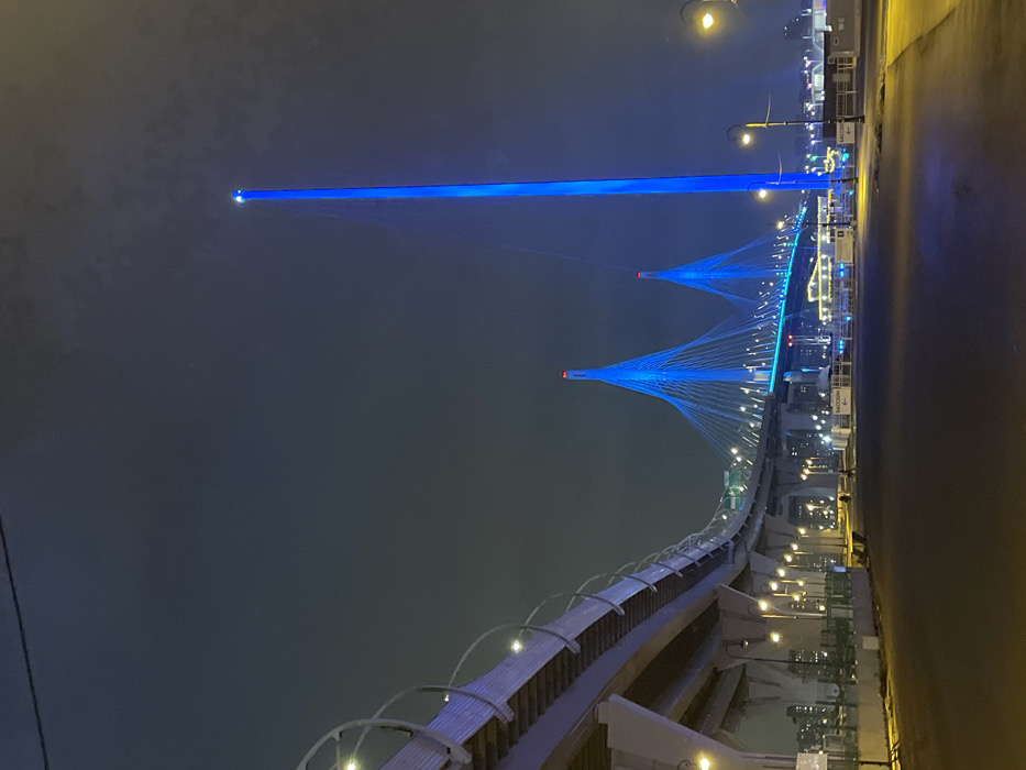 - "The image depicts a nighttime scene dominated by the illuminated structures of the Western High-Speed Diameter (WHSD) bridge in Saint Petersburg, Russia" by FM-20Xdy2, licensed under CC BY 4.0
