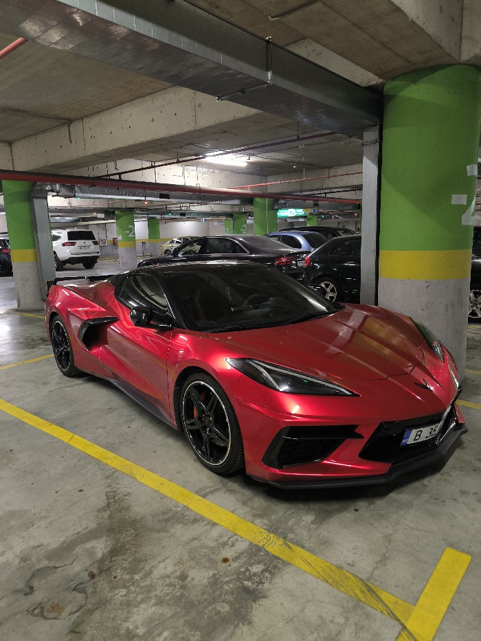 - "The image depicts a metallic red Chevrolet Corvette C8 sports car, parked in an underground parking garage in Varna, Bulgaria" by FM-QsyOh2, licensed under CC BY 4.0