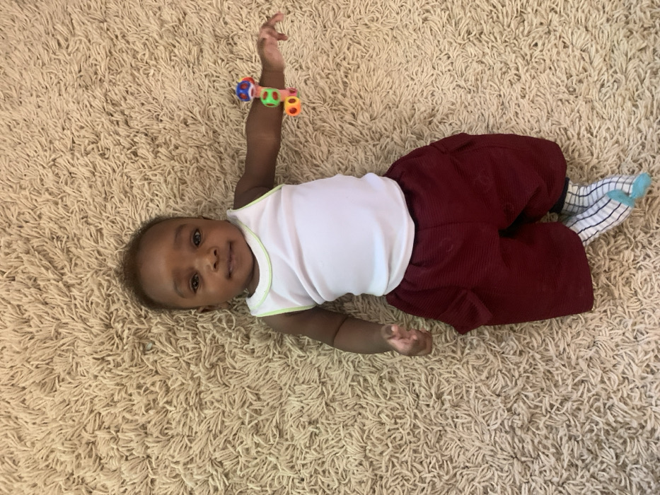 - "A baby is observed lying supine on a light brown, shag-pile rug in what is described as Barakin Akawo, Nigeria" by FM-IPnPh2, licensed under CC BY 4.0