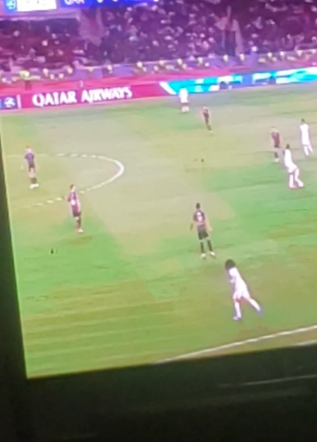 A screen recording shows a soccer game on television
