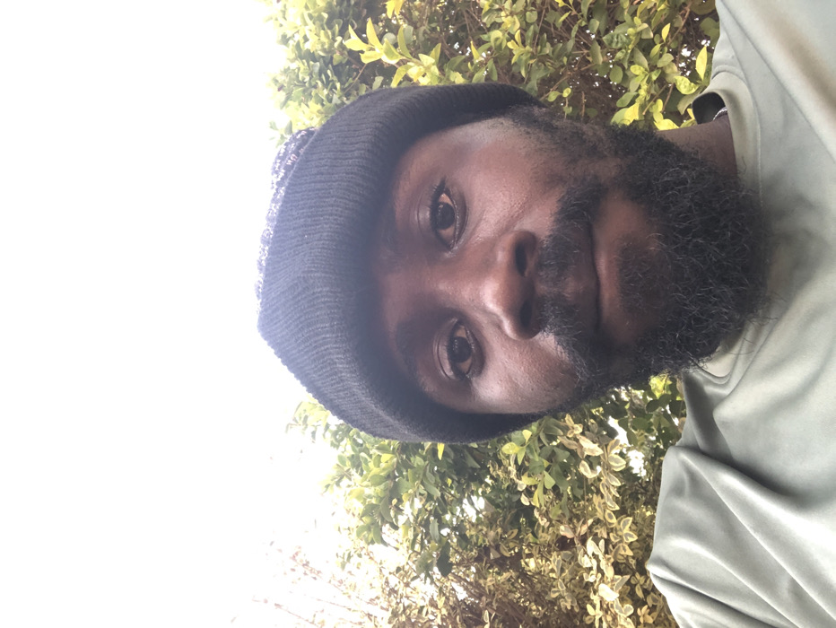 An individual, male, with dark skin and a full dark beard and mustache, is depicted from the chest up in what appears to be a selfie