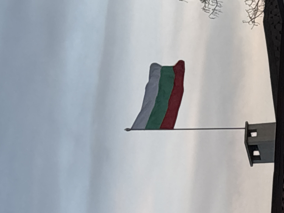 - "The image displays the national flag of Bulgaria, characterized by horizontal stripes of white, green, and red, positioned centrally against an overcast, light grey-blue sky" by FM-U7bYK2, licensed under CC BY 4.0