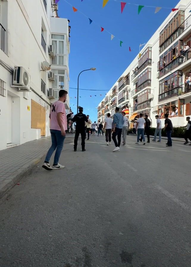- "A group of people walks down a street lined with white buildings under a blue sky decorated with colorful triangular flags" by FM-kNQQB3, licensed under CC BY 4.0