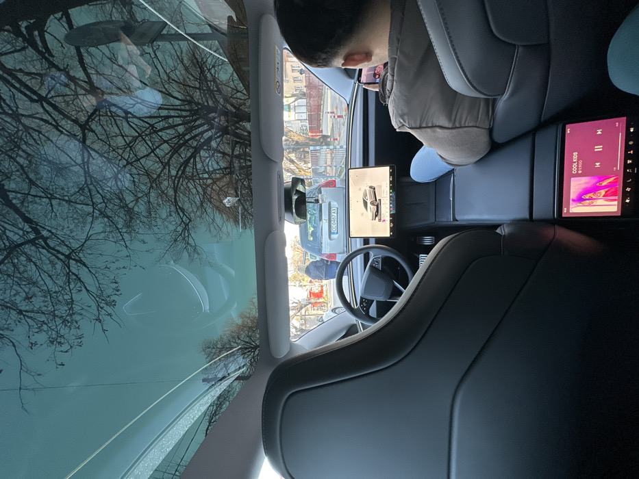 - "The image displays the interior of a Tesla vehicle, observed from a rear passenger perspective, looking out onto a city street in Silistra, Bulgaria" by FM-9DaNu1, licensed under CC BY 4.0
