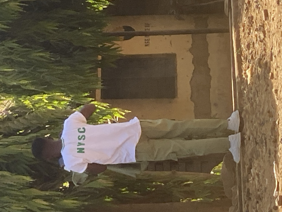 In Maigizo, Nigeria, a male individual is observed from behind, standing outdoors in daylight