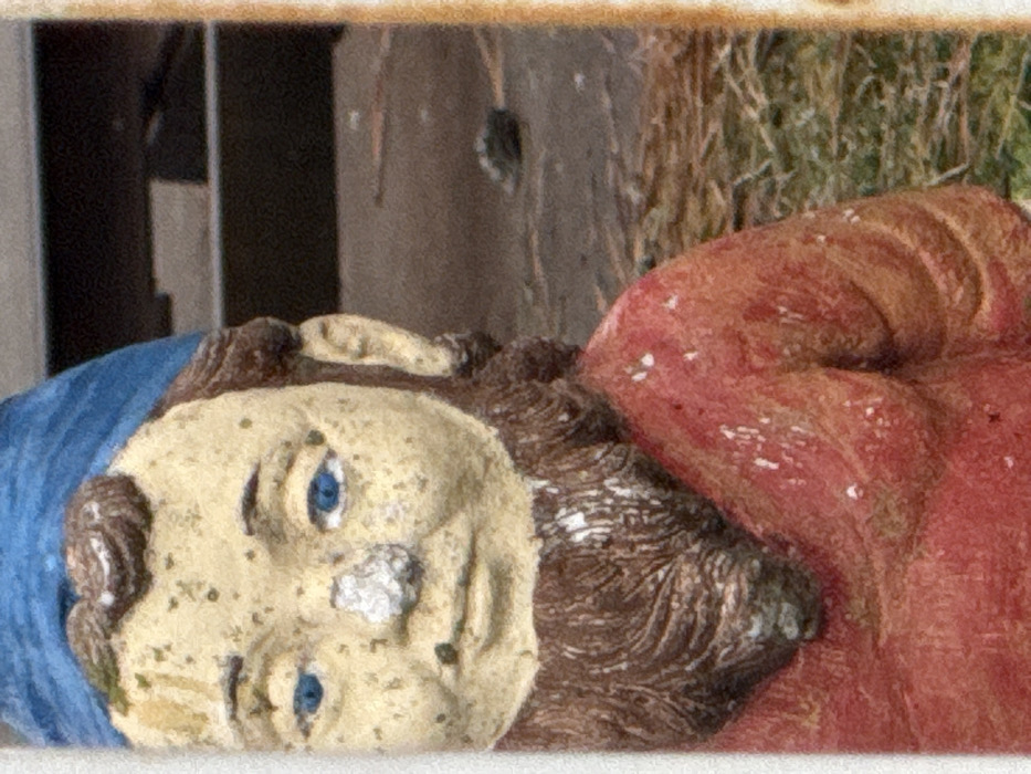 - "The image depicts a close-up, vertical shot of a weathered garden gnome statue positioned outdoors" by FM-PDjLC3, licensed under CC BY 4.0