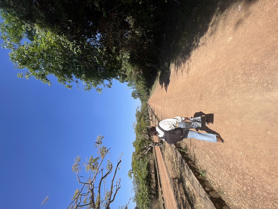 - "The image captures an individual walking along an unpaved, reddish-brown dirt path in Jos, Nigeria, under a clear, cloudless blue sky" by FM-CGRD82, licensed under CC BY 4.0