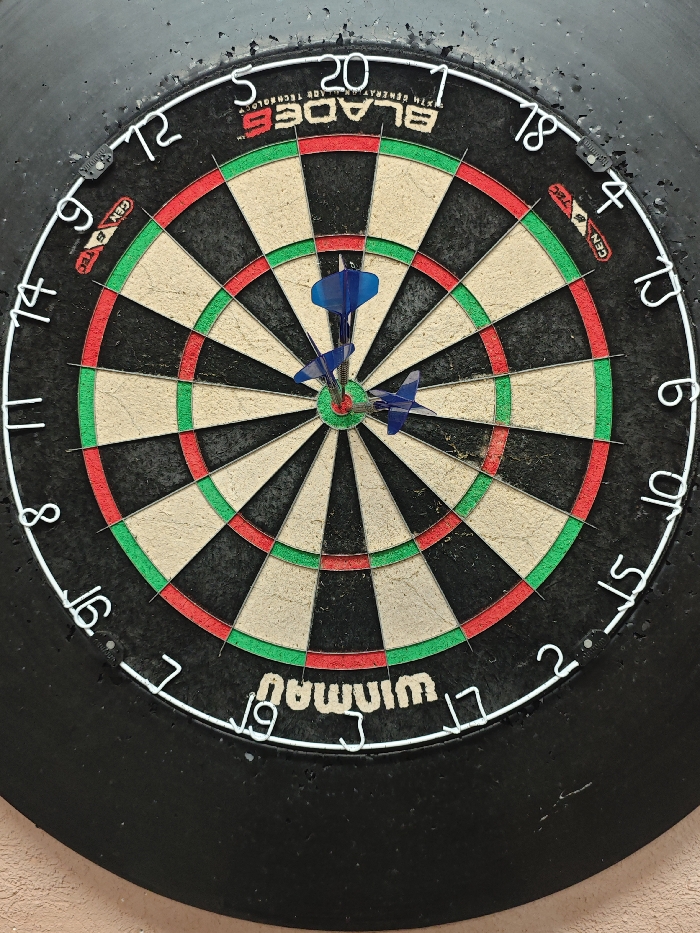 - "A Winmau Blade 5 dartboard is depicted, mounted vertically, with its standard numerical layout visible" by FM-VruEl1, licensed under CC BY 4.0