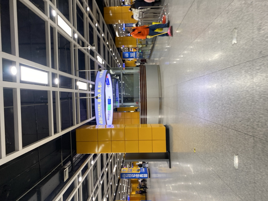 The scene depicts the concourse of Guangzhou South Railway Station in Panyu District, China