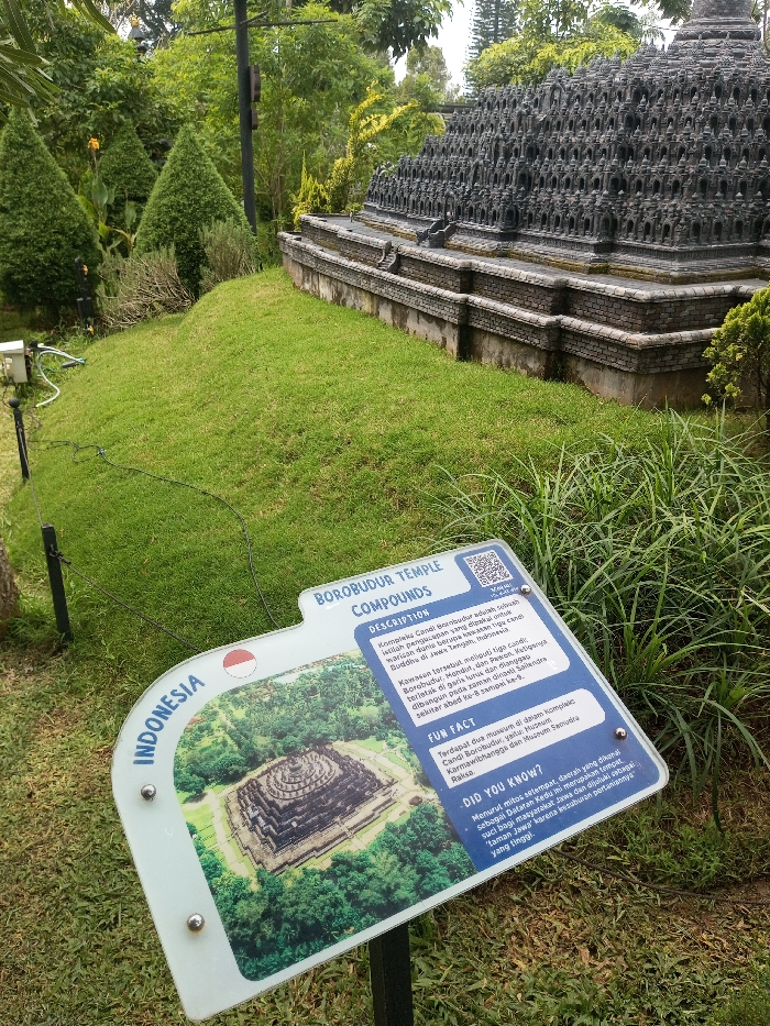 - "This image depicts a miniature replica of the Borobudur Temple, situated within an outdoor exhibit in Ciherang, Indonesia" by FM-OkGy82, licensed under CC BY 4.0