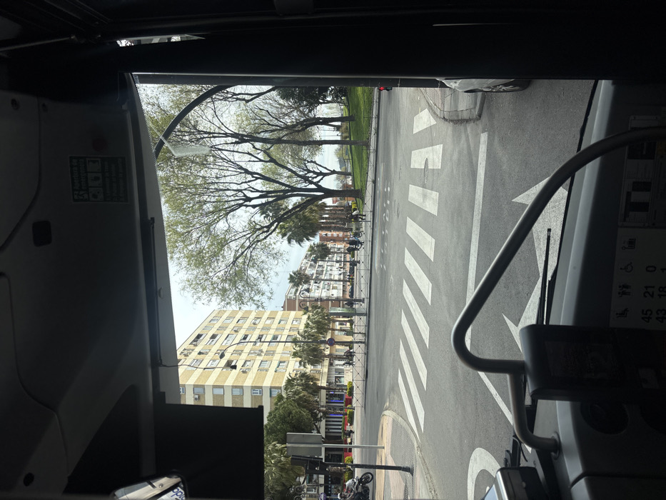 - "The image provides a driver's-eye view from inside a bus, stopped at a large urban intersection on a bright, clear day in Getafe, Spain" by FM-MaXlU2, licensed under CC BY 4.0