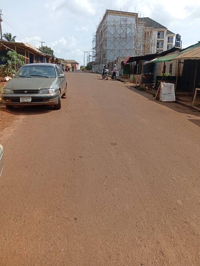 - "The scene depicts a reddish-brown asphalt road in Nsukka, Nigeria, under a partly cloudy sky" by FM-ANy5a2, licensed under CC BY 4.0