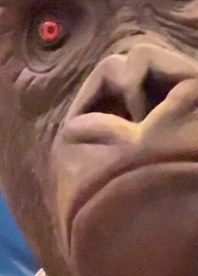 - "statue of a gorilla with red eyes perched atop a structure resembling a stone wall" by FM-73NWd2, licensed under CC BY 4.0