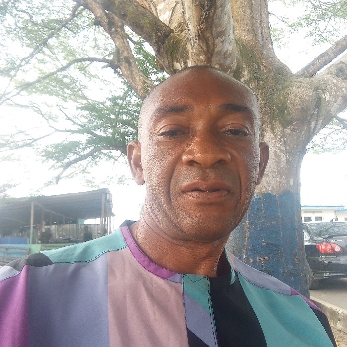 A mid-shot captures an adult male standing outdoors in the city of Koko, Nigeria