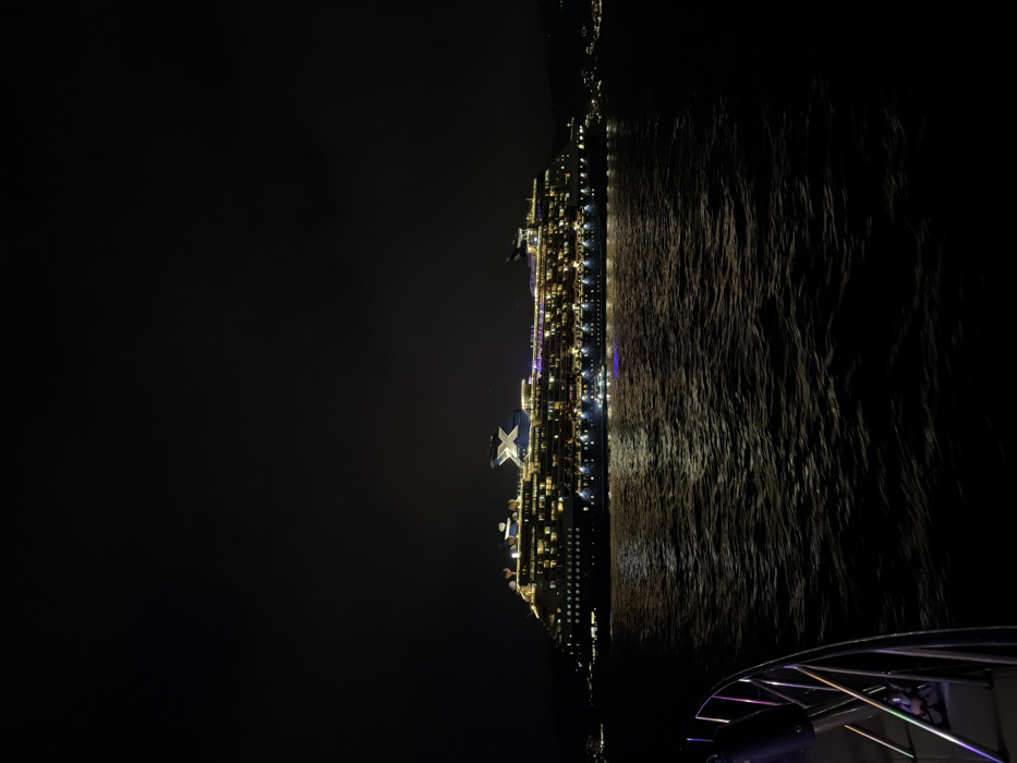 - "A large, brightly illuminated cruise ship is depicted at night, positioned on the dark, rippled waters of a bay near Patong, Thailand" by FM-AxJLq1, licensed under CC BY 4.0