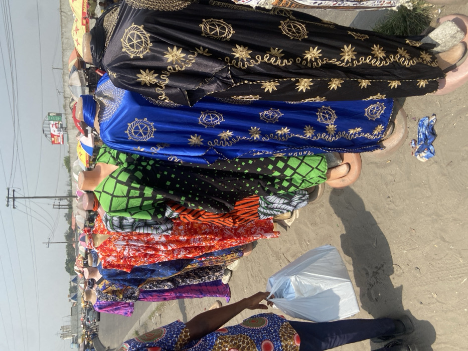 This image captures an outdoor market scene in Alasia, Nigeria, under bright daylight conditions casting distinct shadows