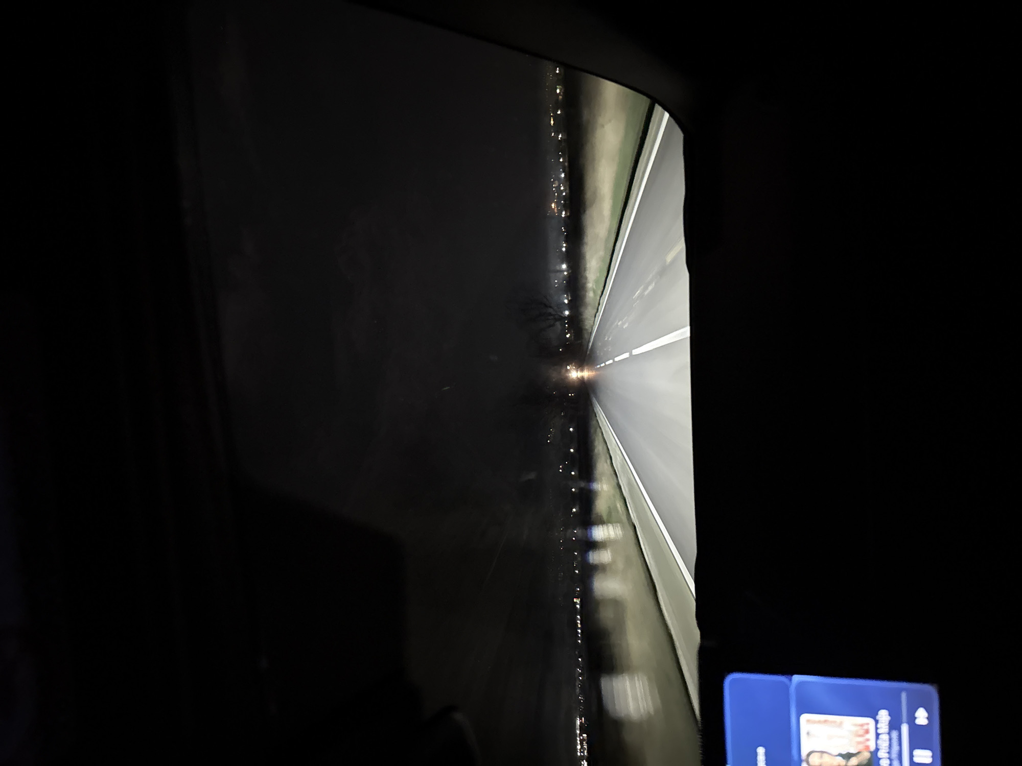 - "The image presents a nighttime view from the interior of a vehicle, looking out through the front windshield onto a wet asphalt road" by FM-hItD02, licensed under CC BY 4.0