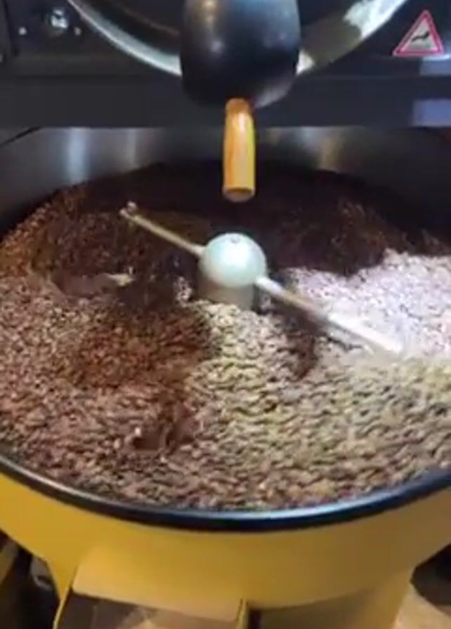 coffee bean roaster in operation