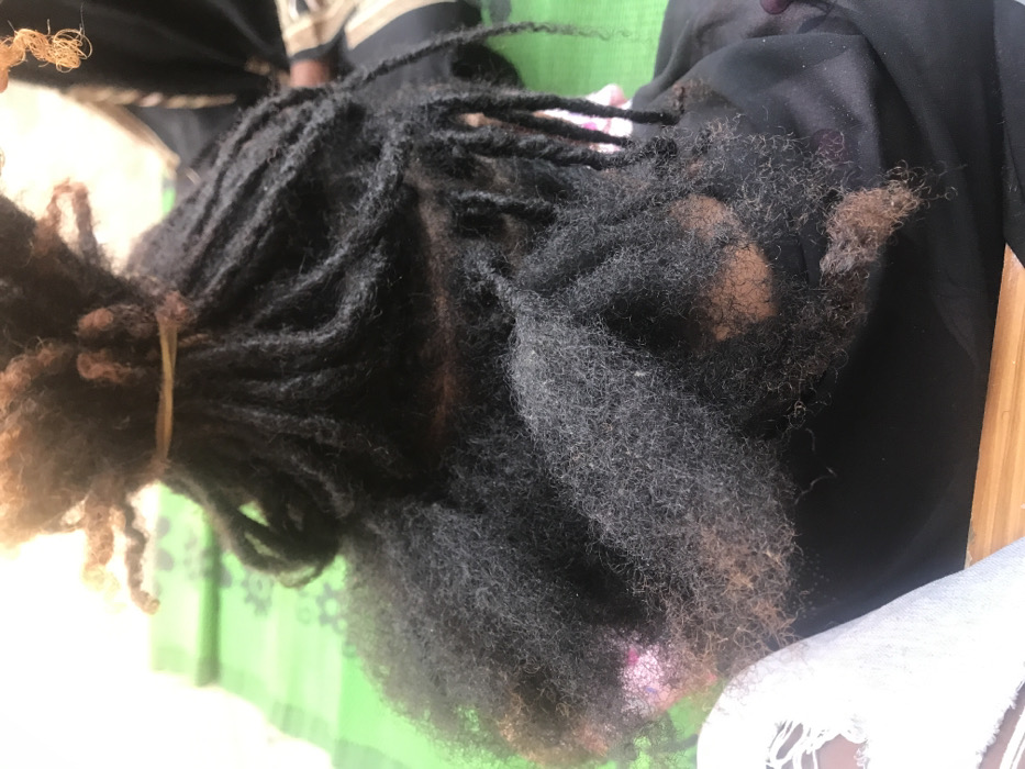- "A rear-view, close-up photograph depicts the head of an individual, presumably located in Dadi Riba, Nigeria" by FM-HYhIK2, licensed under CC BY 4.0