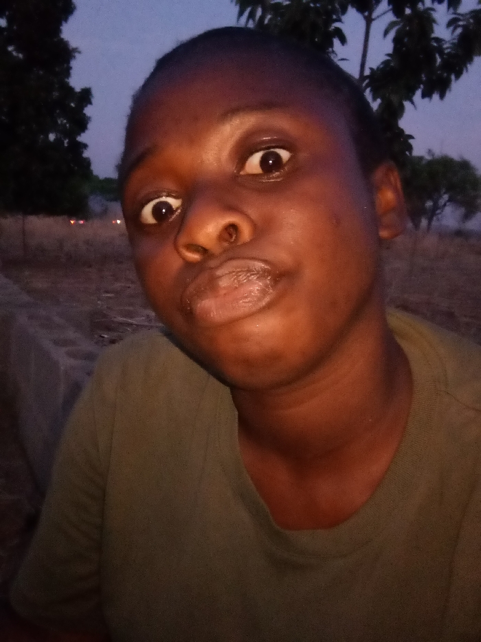 - "A close-up of a Black woman with short hair in an olive-green t-shirt against a blurred background of trees and fading daylight" by FM-LgEEK2, licensed under CC BY 4.0