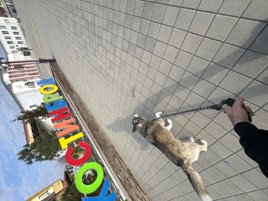 - "A first-person perspective photograph captures a person's hand holding a dog leash on a paved surface in Kostinbrod, Bulgaria" by FM-P2xtC2, licensed under CC BY 4.0