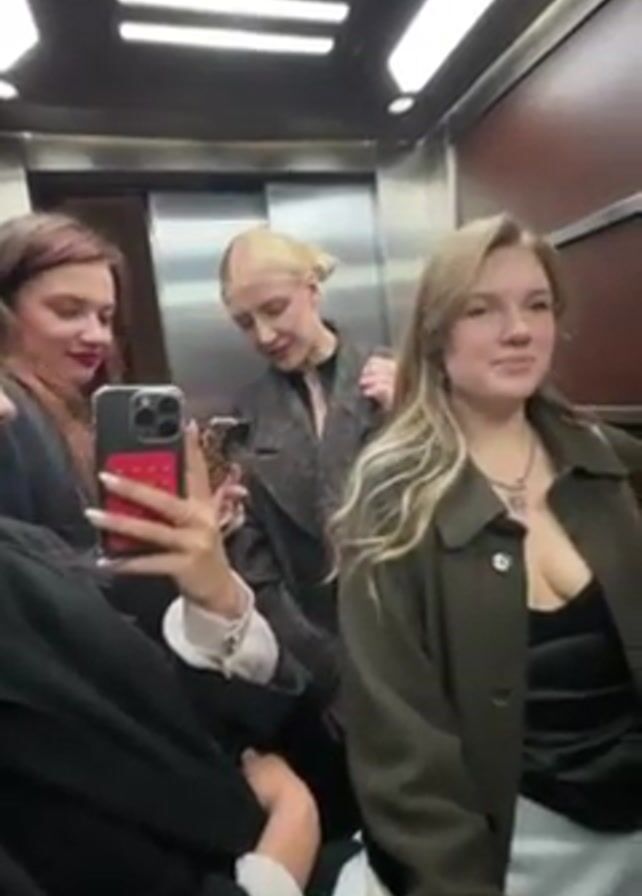 Certainly! Here is a description of the video: The video shows four women riding in an elevator