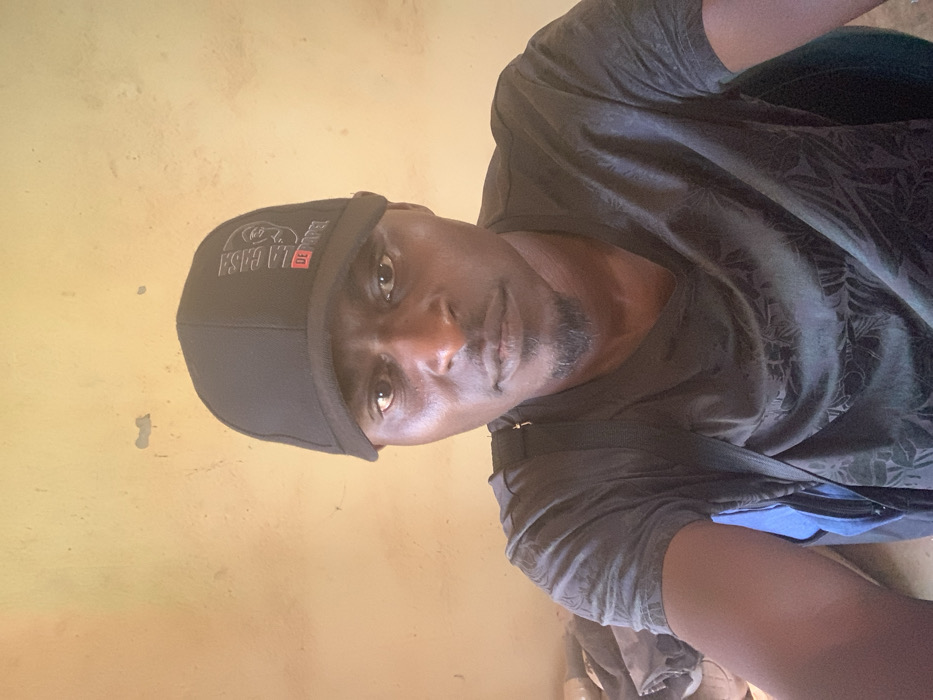 The image displays a male individual, likely of African descent, captured in a frontal, chest-up shot